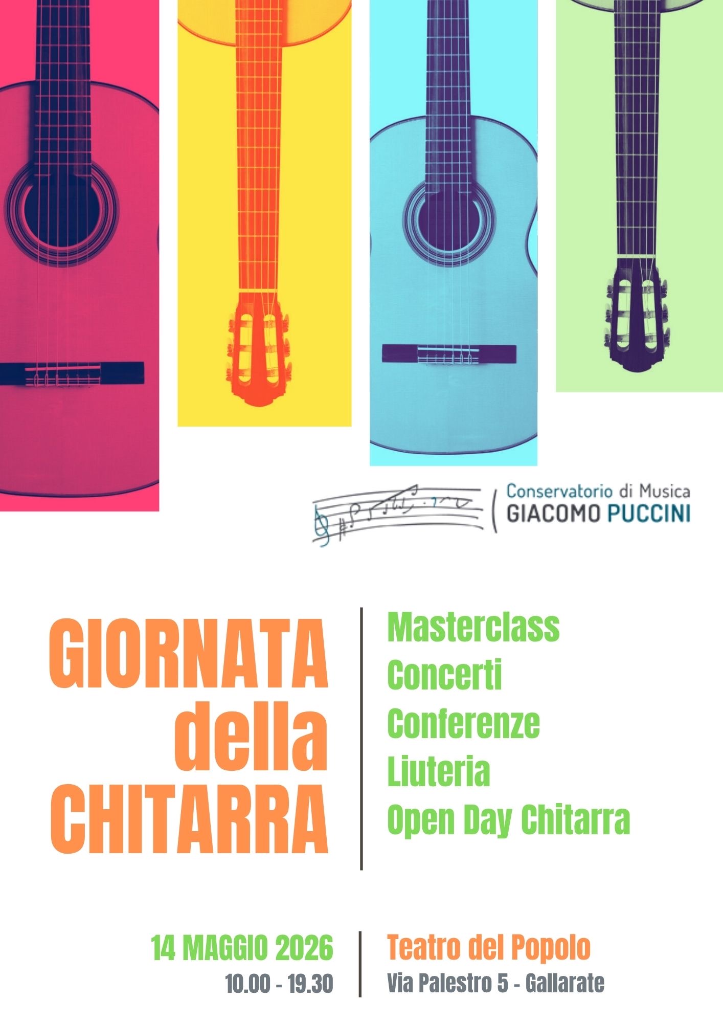 Durante tutta la giornata i Docenti di Chitarra del Conservatorio saranno a disposizione per informazioni sul Conservatorio e sui percorsi di studio
